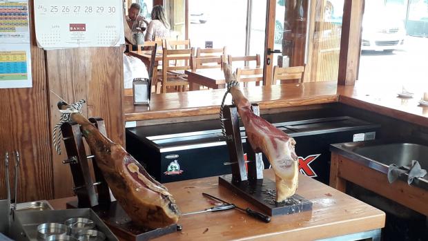 Španija je tu druga dimenzija-to se jede ,kao nekad, na tanjirima ,komadi.U skoro svim restoranima je ima zaglavljena u ovim mašinama za sečenje.