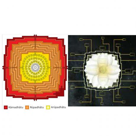 Tri kružne platforme, žute boje su Arupadhatu(nematerijalni svet) a na vrhu centralna stupa Nirvana.
