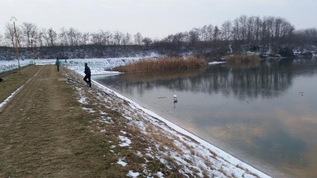 Tek što sam krenuo kolima , naiđoh na ovaj rukavac-zimovnik sa stotinak labudova