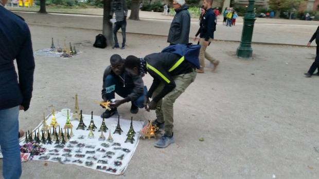Očekivao bih travu ili kocku na stazi ( tako je na trgu čak i moga malog mista) a ono prašina i šljunak po kojima crnci razastru ove mini suvenire .